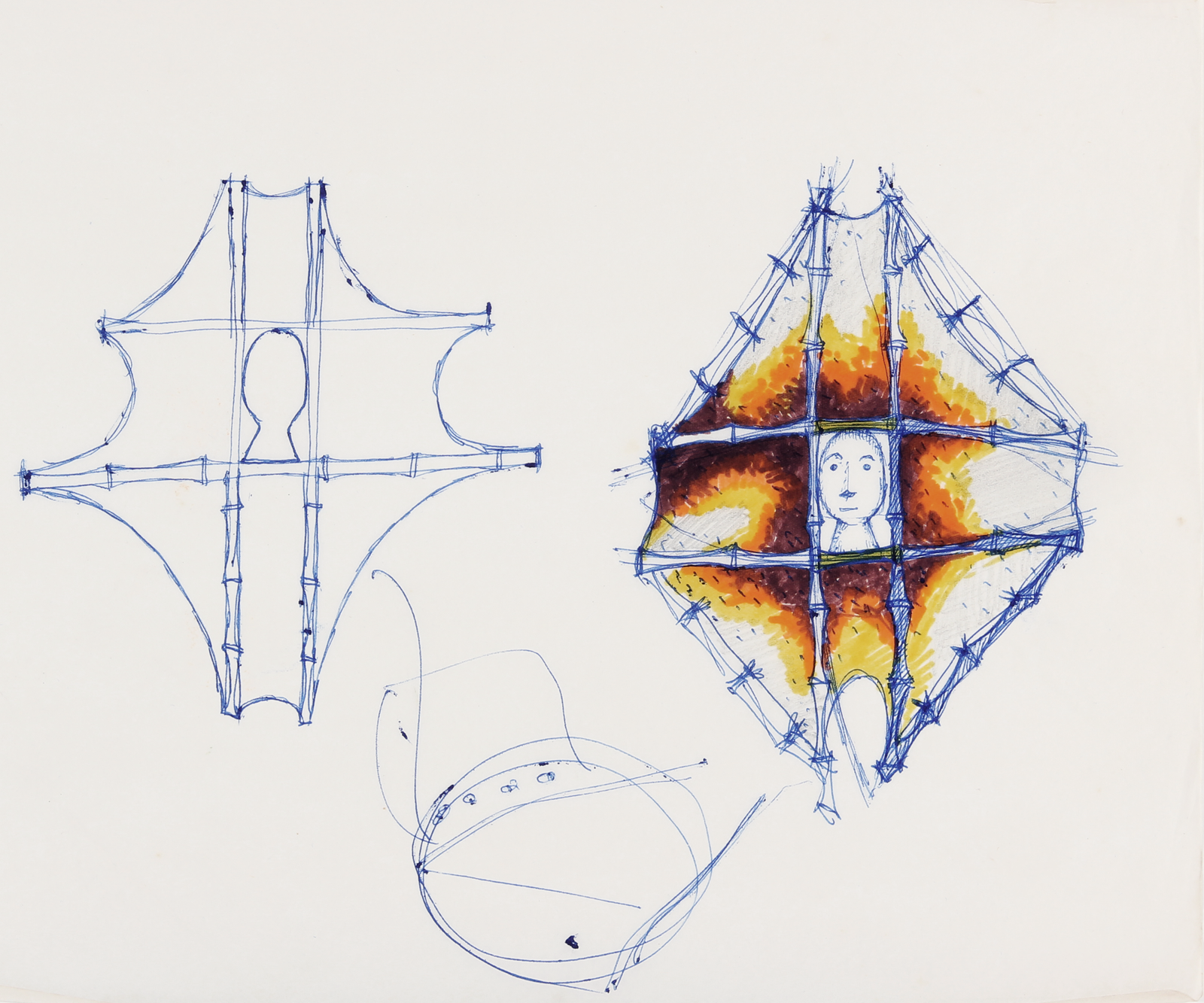 Flávio Império, Esboços e descrições (realizados posteriormente) dos vários elementos da festa exposição.